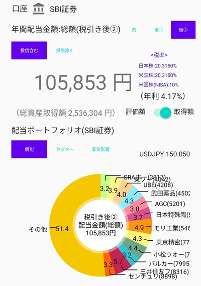 特定口座は、年間配当10万5853パワー。